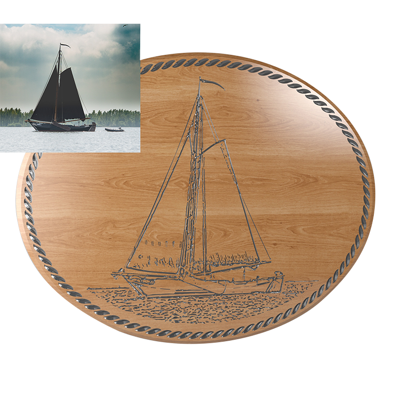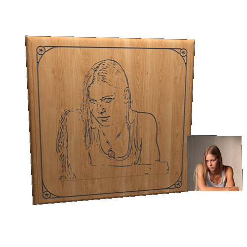 Aus ihrem Foto entsteht mittels eingefärbter V-Nuten ein Konturbild auf Massivholz. Größe ca. 30x20 cm