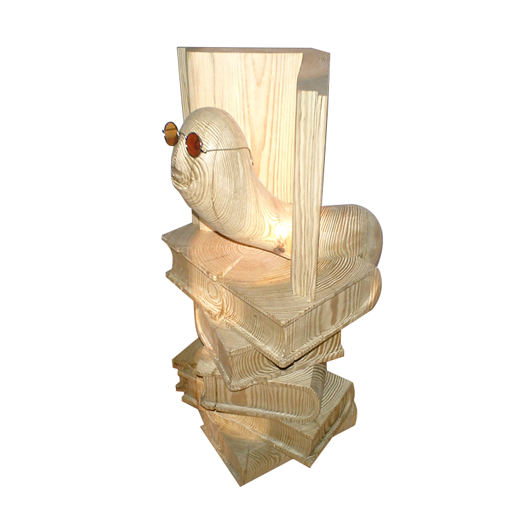 Entstanden ist der Bücherwurm aus einem Rammpfahl aus Lärchenholz, der zum Stegbau im Museumshafen Kappeln verwendet wurde. Höhe ca. 65 cm. 370,-€