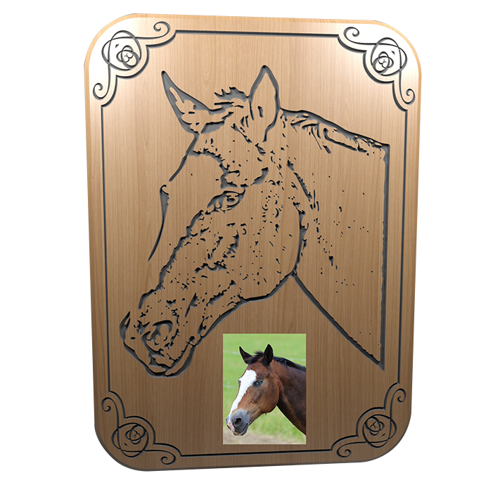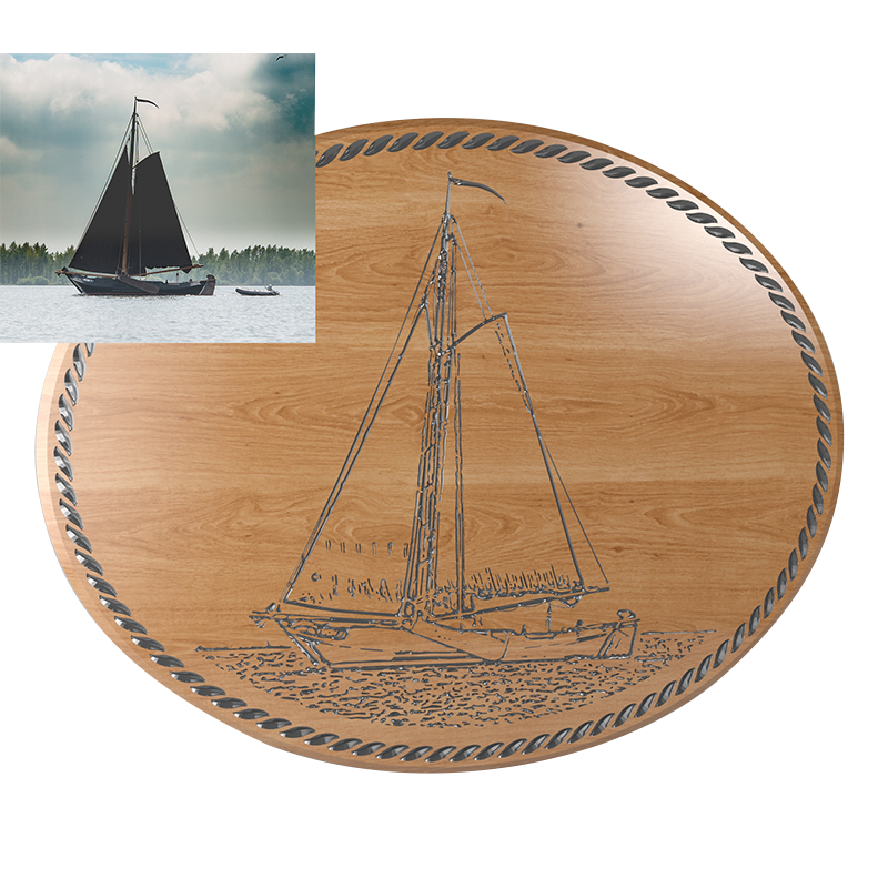 Aus ihrem Foto entsteht mittels eingefärbter V-Nuten ein Konturbild auf Massivholz. Größe ca. 30x20 cm