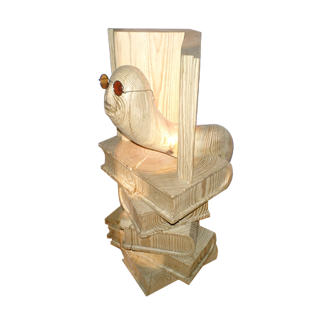Entstanden ist der Bücherwurm aus einem Rammpfahl aus Lärchenholz, der zum Stegbau im Museumshafen Kappeln verwendet wurde. Höhe ca. 65 cm. 370,-€